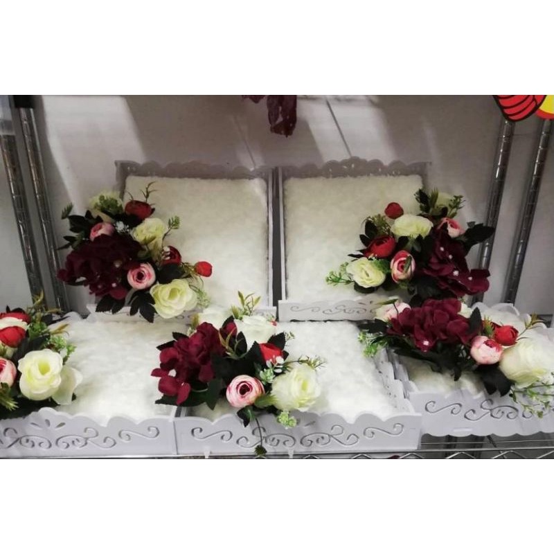 Jadi anggaran harga untuk hiasan satu barang pada dulang hantaran ialah. 15cm wide x 22cm height. Kami senaraikan tray khas untuk bekas hadiah-hadiah kepada pihak perempuan dan lelaki.